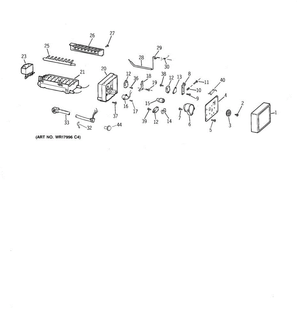 The Electromechanical Icemaker Kit is an OEM replacement part for GE refrigerators. It includes the ice maker assembly components responsible for harvesting, ejecting, and monitoring the ice-making process.