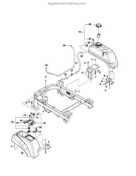 This part is a replacement fuel tank. This is a genuine OEM part made by Husqvarna and has been sourced directly from the manufacturer. If the current fuel tank is defective or broken, this part can be used as a replacement. It is intended for use with a variety of lawn tractor models.The fuel tank holds the lawn tractor's fuel supply. If this part is cracked or broken, the user may notice fuel leaking or inefficient fuel use. Thus, the fuel tank will need to be replaced with a genuine OEM part. When working on or near an engine, always ensure that the equipment is powered off and completely cooled down before attempting to undergo any repairs. For more accurate information on how and where to install this fuel tank, the appropriate owner's manual and equipment diagrams should be referred to. This fuel tank is suitable for use on a variety of lawn tractor models manufactured by Husqvarna, Poulan, and other brands. It is a genuine OEM part and thus is made of high-quality, durable plastic. Part sold individually.