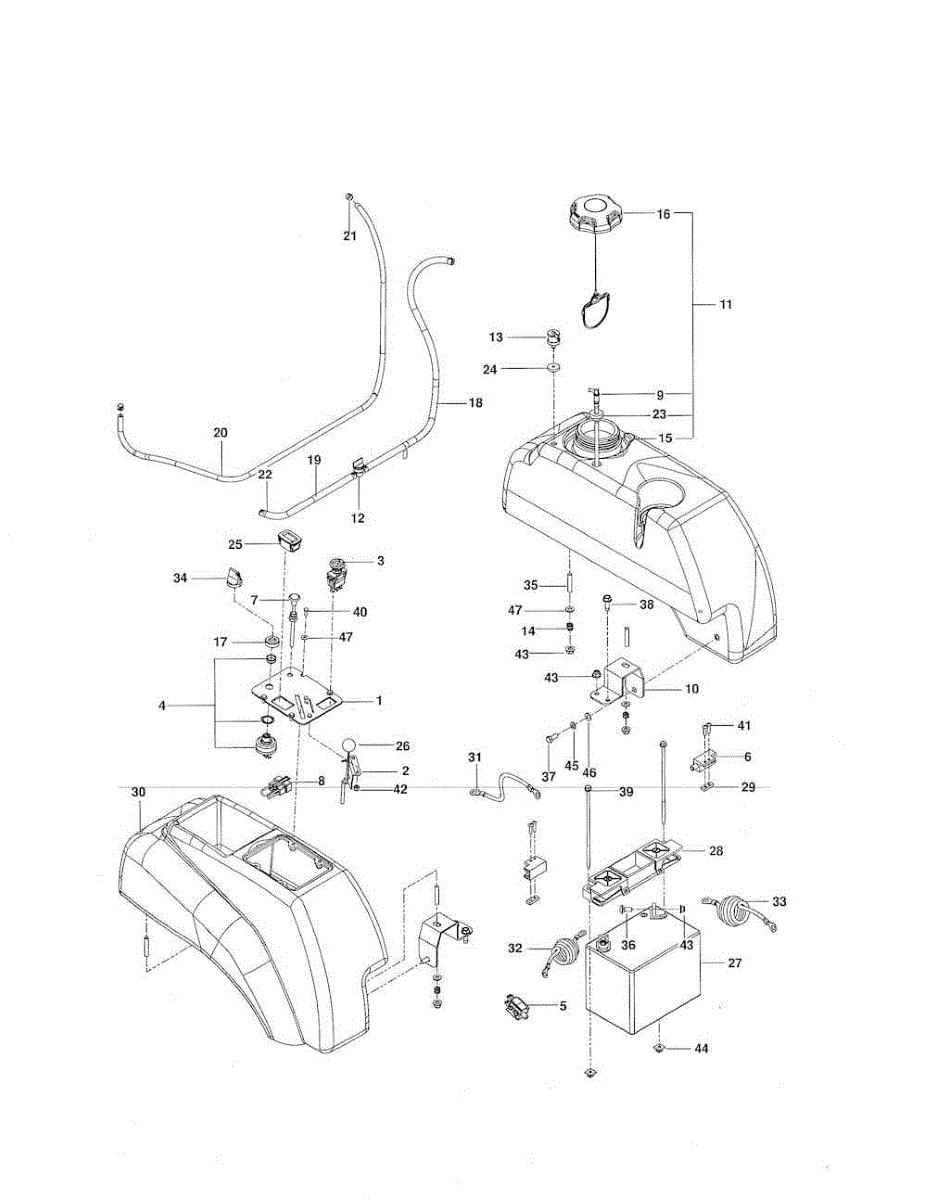 Replacement hex bolt for outdoor power equipment. Secures components like fuel tanks and body panels. Needed when original is stripped, rusted, or lost.