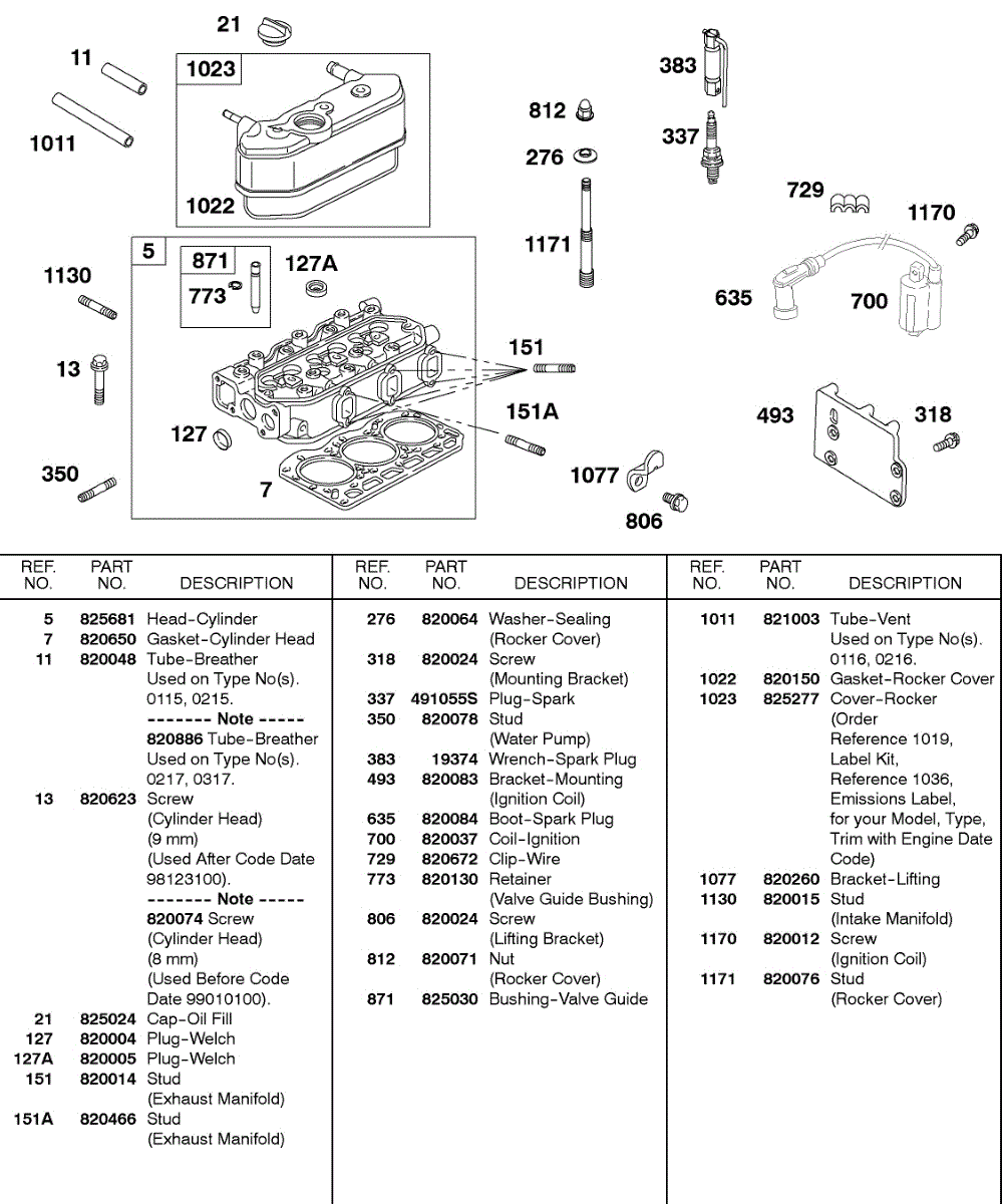 Parts for Briggs & Stratton 433447-0115-01: Ignition, Rocker Cover, Cylinder Head Parts