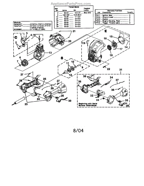 Parts for Homelite UT15204: Ignition / Rotor / Starter / Clutch Parts