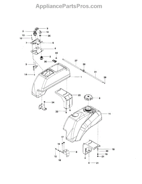 This part is a replacement fuel tank. This is a genuine OEM part made by Husqvarna and has been sourced directly from the manufacturer. If the current fuel tank is defective or broken, this part can be used as a replacement. It is intended for use with a variety of lawn tractor models.The fuel tank holds the lawn tractor's fuel supply. If this part is cracked or broken, the user may notice fuel leaking or inefficient fuel use. Thus, the fuel tank will need to be replaced with a genuine OEM part. When working on or near an engine, always ensure that the equipment is powered off and completely cooled down before attempting to undergo any repairs. For more accurate information on how and where to install this fuel tank, the appropriate owner's manual and equipment diagrams should be referred to. This fuel tank is suitable for use on a variety of lawn tractor models manufactured by Husqvarna, Poulan, and other brands. It is a genuine OEM part and thus is made of high-quality, durable plastic. Part sold individually.