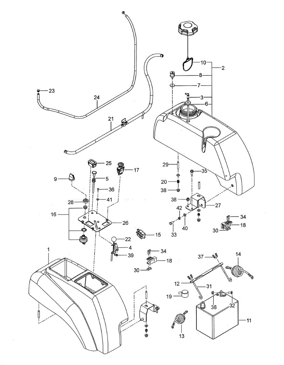 Left-hand fuel tank assembly for rear-engine riding mowers. Replace your cracked, leaking, or damaged original tank to restore proper fuel storage.