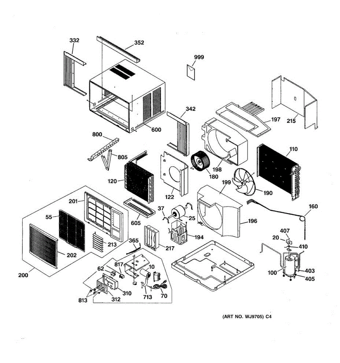 Mounting bracket for air conditioners. Secures unit to wall or window frame. Replace if bracket is bent, cracked, rusted, or missing hardware mounts.