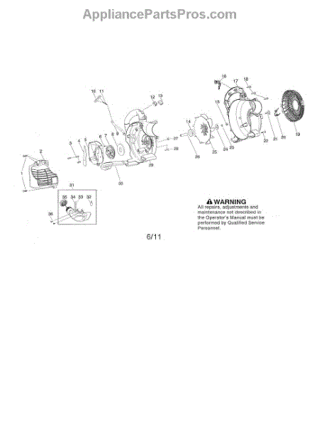 This is a leaf blower fan blade, also called an impeller. This is what creates the flow of air out of the machine that blows leaves, grass clippings, and other debris out of the way. Without this part, the leaf blower would be unable to move air at all. The leaf blower fan blade is subject to some wear and tear through normal use. It is also made of plastic and may degrade over time, eventually cracking. If the leaf blower is not moving air and the engine is running normally, this could be the problem. Replacing the leaf blower fan blade will require opening the blower motor housing. Locate the fan blade, remove the Torx screws, and then remove the old impeller. Install the new one, replace the screws, and then reassemble the housing. This replacement fan blade is made from plastic with a metal sheath/insert. Note that this is an OEM part, and it is sold individually. It fits over 44 different Craftsman and Husqvarna gas-powered leaf blowers.