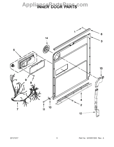This inner door seal forms a moisture barrier between the dishwasher tub and the door assembly, helping keep wash water and steam contained. Replacing a worn seal can stop drips at the door and protect internal components.