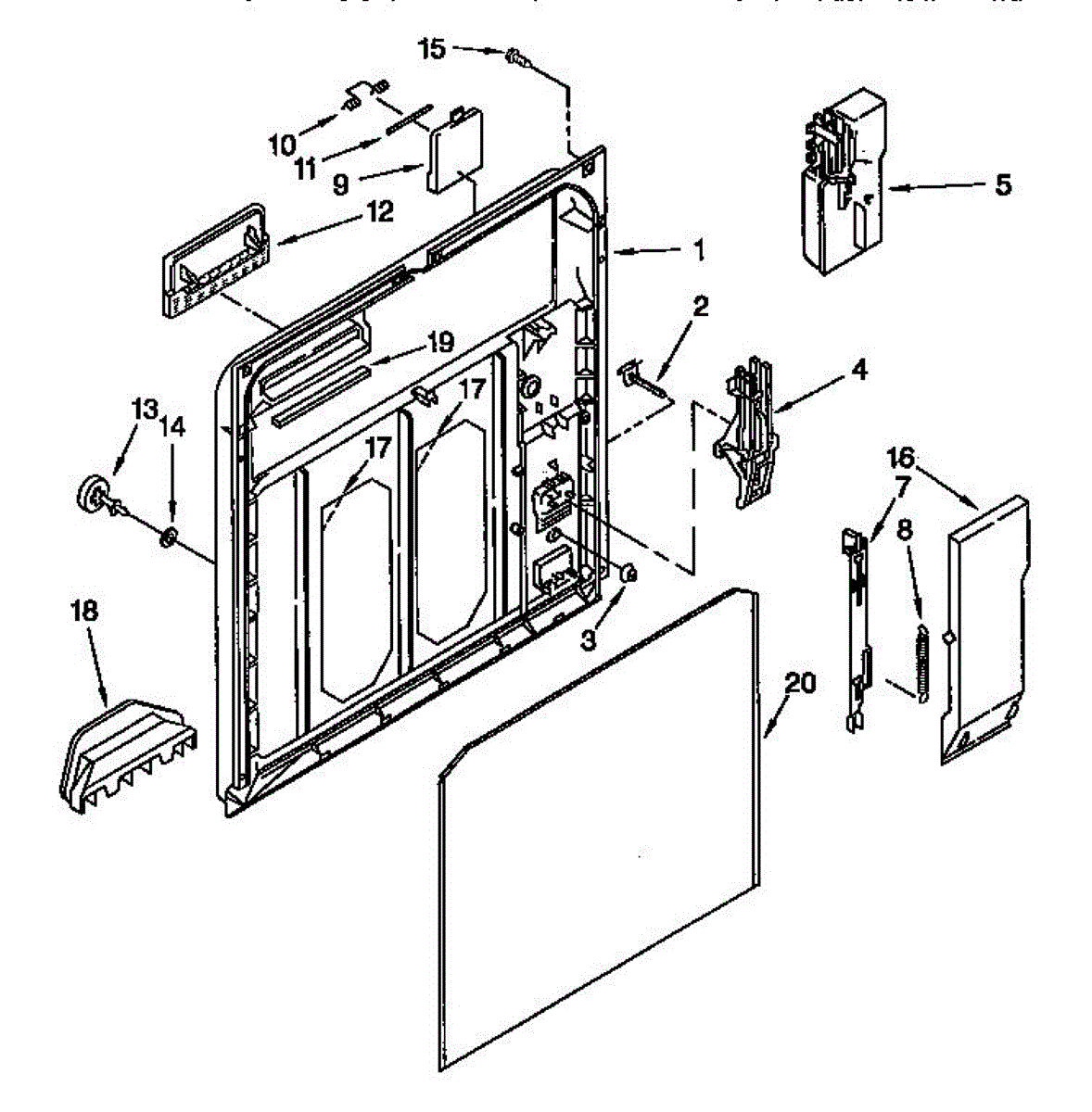 The Dispenser Lid is an OEM replacement part for Whirlpool dishwashers. Located at the top of the dishwasher door, it provides access to add detergent and rinse aid to the internal dispenser compartment below. This dishwasher soap dispenser lid is included in the dispenser cover kit 4387043. Causes of a bad dispenser lid can include wear and tear of hinge points from years of repeated openings. Cracks may also arise in the plastic material. Symptoms of a bad Dispenser Lid include: