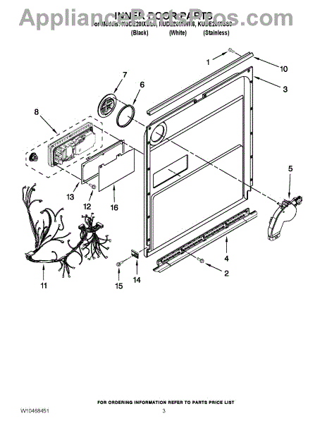 Parts for Kitchenaid KUDE20IXWH6: 03 - Inner Door Parts