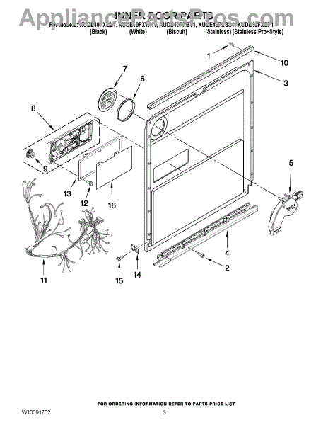 Parts for Kitchenaid KUDE40FXBL1: 03 - Inner Door Parts