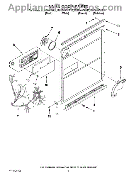 Parts for Kitchenaid KUDE40FXSS3: 03 - Inner Door Parts