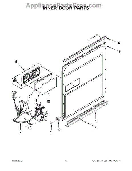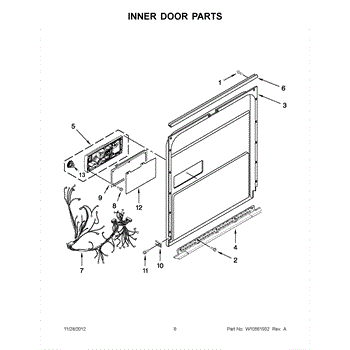 This inner door seal forms a moisture barrier between the dishwasher tub and the door assembly, helping keep wash water and steam contained. Replacing a worn seal can stop drips at the door and protect internal components.