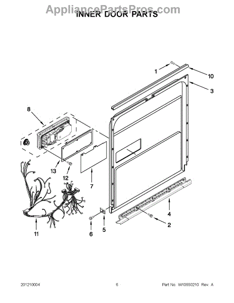 This inner door seal forms a moisture barrier between the dishwasher tub and the door assembly, helping keep wash water and steam contained. Replacing a worn seal can stop drips at the door and protect internal components.