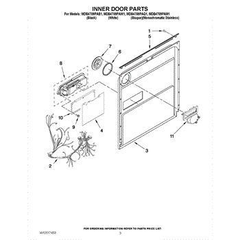 The Inner Door Panel is an OEM part for Whirlpool dishwashers. Located inside the dishwasher door, this hard-wearing panel protects internal components from impact during loading.