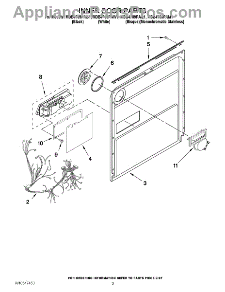 The Inner Door Panel is an OEM part for Whirlpool dishwashers. Located inside the dishwasher door, this hard-wearing panel protects internal components from impact during loading.