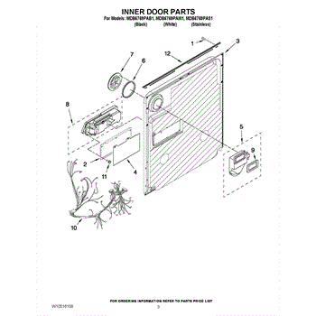 The Inner Door Panel is an OEM part for Whirlpool dishwashers. Located inside the dishwasher door, this hard-wearing panel protects internal components from impact during loading.