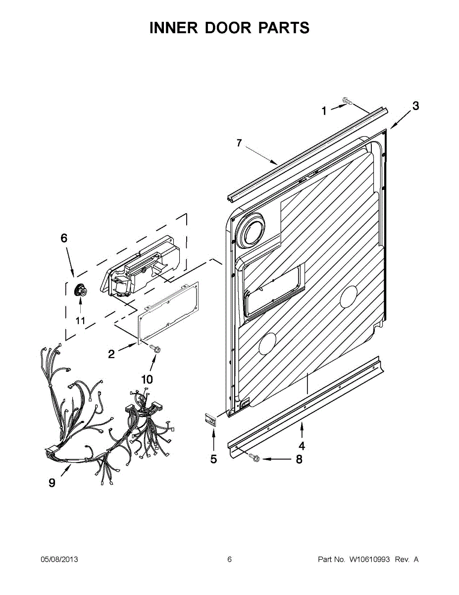 Replace your dishwasher's inner door panel if it's cracked, warped, or damaged. This structural component installs on the interior door assembly.