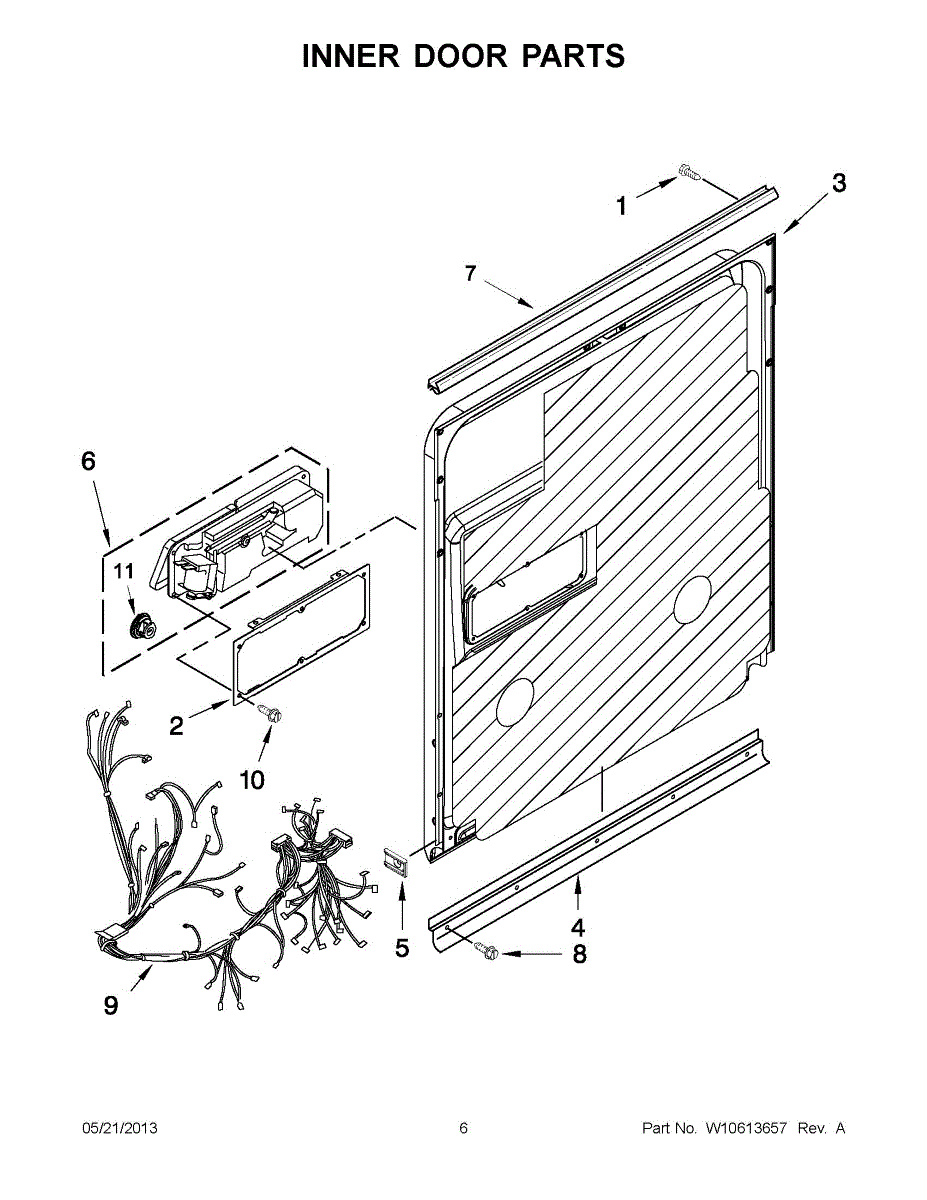 Replace your dishwasher's inner door panel if it's cracked, warped, or damaged. This structural component installs on the interior door assembly.