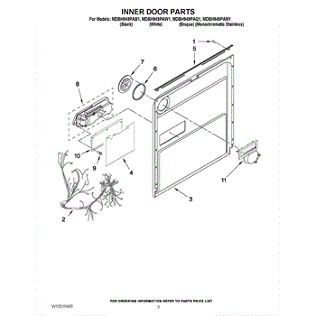The Inner Door Panel is an OEM part for Whirlpool dishwashers. Located inside the dishwasher door, this hard-wearing panel protects internal components from impact during loading.
