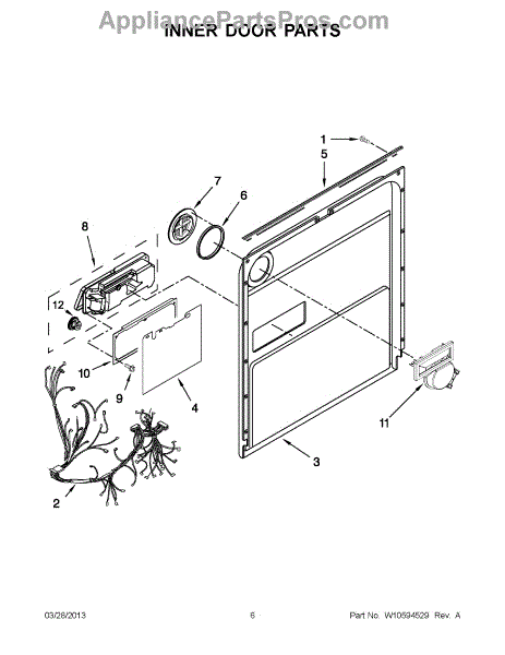 The Inner Door Panel is an OEM part for Whirlpool dishwashers. Located inside the dishwasher door, this hard-wearing panel protects internal components from impact during loading.