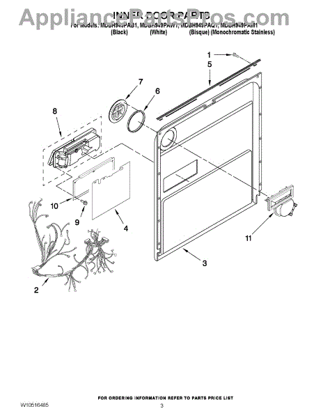 The Inner Door Panel is an OEM part for Whirlpool dishwashers. Located inside the dishwasher door, this hard-wearing panel protects internal components from impact during loading.