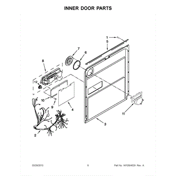 The Inner Door Panel is an OEM part for Whirlpool dishwashers. Located inside the dishwasher door, this hard-wearing panel protects internal components from impact during loading.