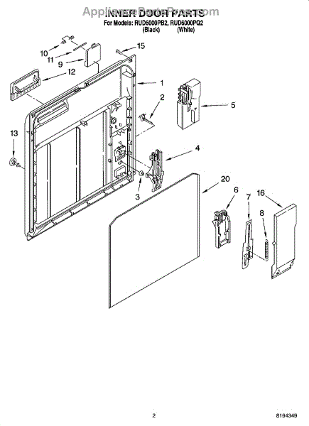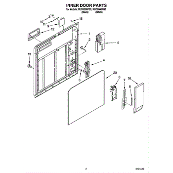 Parts for Roper RUD6000PQ2: 02 - Inner Door Parts