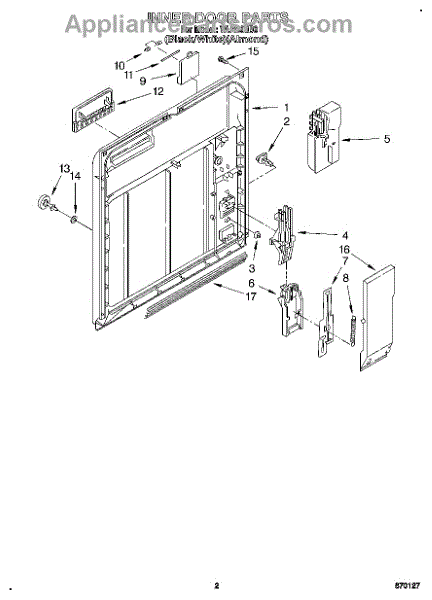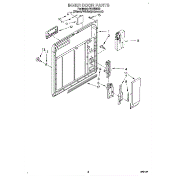 Replace your dishwasher's inner door panel if cracked, warped, or damaged. Mounts inside the door to hold controls and dispenser components securely.