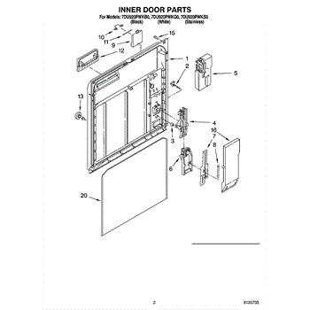 Parts for Whirlpool 7DU920PWKQ0: 02 - Inner Door Parts