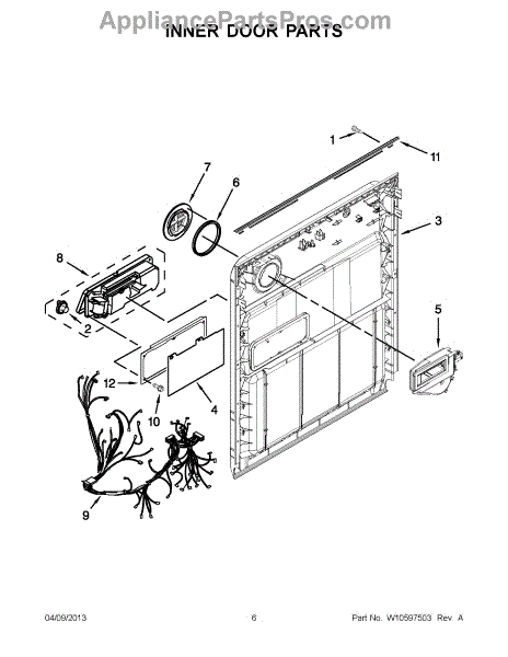 The Inner Door Panel is an OEM part for Whirlpool dishwashers. Located inside the dishwasher door, this hard-wearing panel protects internal components from impact during loading.