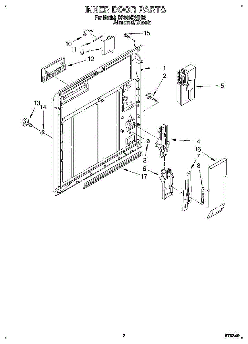 Replace your dishwasher's inner door panel if cracked, warped, or damaged. Mounts inside the door to hold controls and dispenser components securely.
