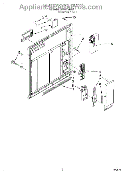 Parts for Whirlpool DP840CWDB5: 02 - Inner Door Parts