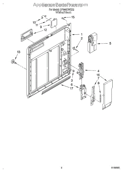 Parts for Whirlpool DP840DWGX2: 02 - Inner Door Parts