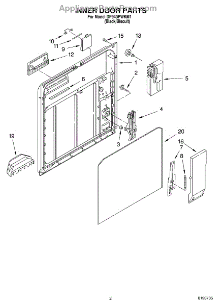 Parts for Whirlpool DP940PWKM1: 02 - Inner Door Parts