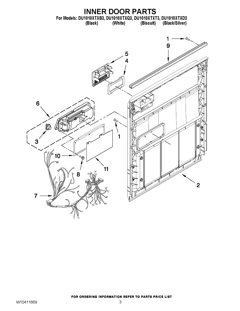 Parts for Whirlpool DU1010XTXT3: 03 - Inner Door Parts