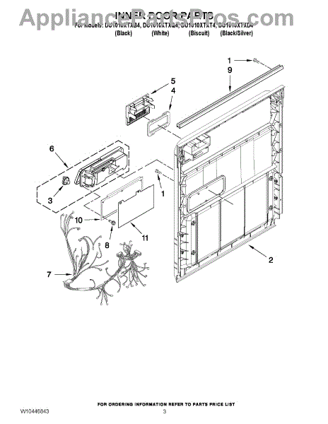 Parts for Whirlpool DU1010XTXT4: 03 - Inner Door Parts