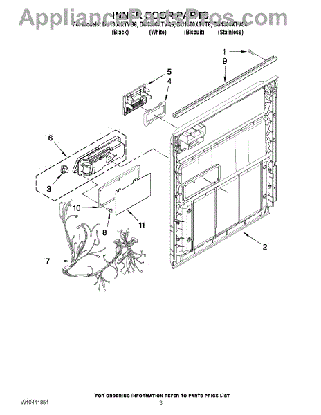 Parts for Whirlpool DU1300XTVQ6: 03 - Inner Door Parts