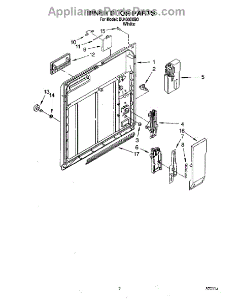 Parts for Whirlpool DU4000XB0: 02 - Inner Door Parts