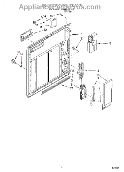 Parts for Whirlpool DU400CWDB2: 02 - Inner Door Parts