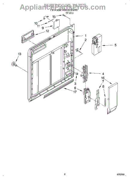 Parts for Whirlpool DU400CWGW0: 02 - Inner Door Parts