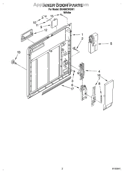 Parts for Whirlpool DU400CWGW1: 02 - Inner Door Parts