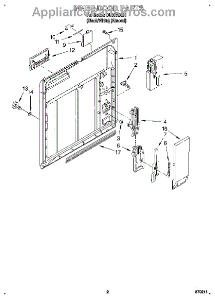 Parts for Whirlpool DU8000XB1: 02 - Inner Door Parts