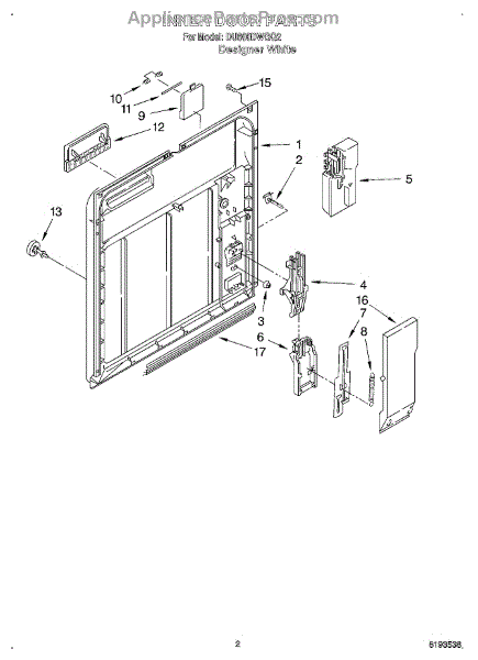 Parts for Whirlpool DU800DWGQ2: 02 - Inner Door Parts