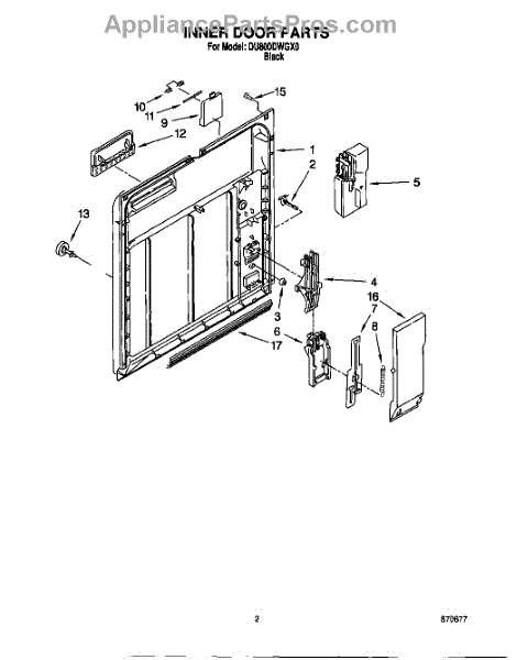 Parts for Whirlpool DU800DWGX0: 02 - Inner Door Parts