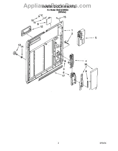 Parts for Whirlpool DU810CWDQ3: 02 - Inner Door Parts