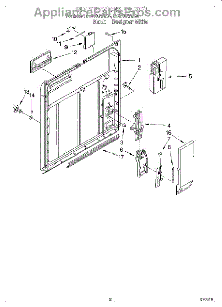 Parts for Whirlpool DU810CWDQ4: 02 - Inner Door Parts
