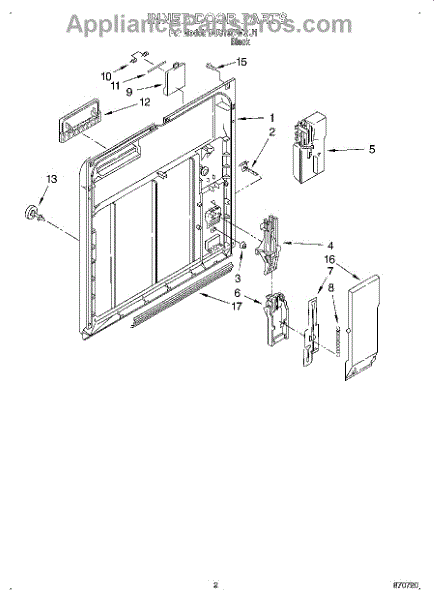 Parts for Whirlpool DU810DWGU1: 02 - Inner Door Parts