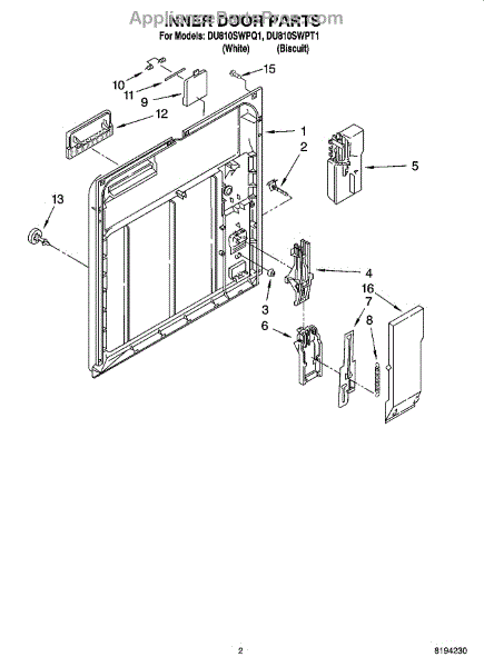 Replace your dishwasher's inner door panel if cracked, warped, or damaged. Mounts inside the door to hold controls and dispenser components securely.