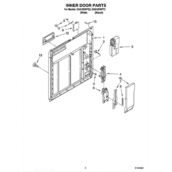 Parts for Whirlpool DU810SWPT2: 02 - Inner Door Parts