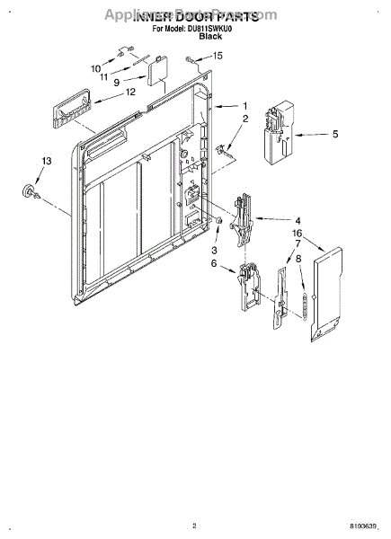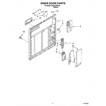 Parts for Whirlpool DU811SWKU0: 02 - Inner Door Parts