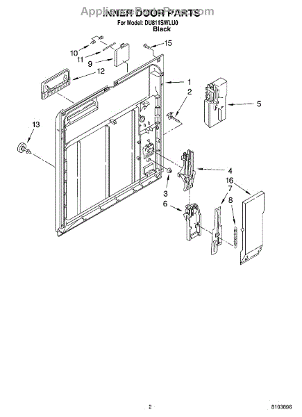 Parts for Whirlpool DU811SWLU0: 02 - Inner Door Parts